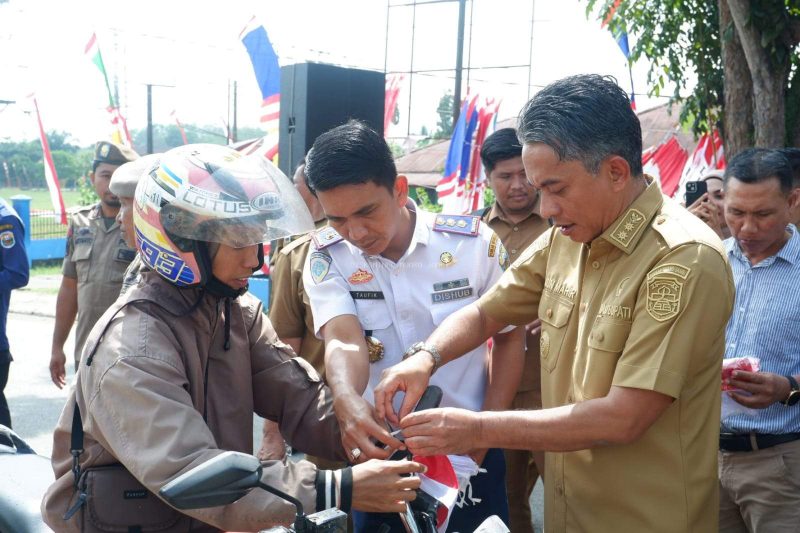 Sasaranfublik.com, Muaro Jambi – Wakil Bupati kabupaten Muaro Jambi Junaidi H.Mahir Menghadiri dalam Acara gerakan pembagian Bendera merah putih tingkat kabupaten Muaro Jambi yang bertempat di depan kantor Camat Sengeti kecamatan Sekernan kabupaten Muaro Jambi.Selasa (12/08/2025).