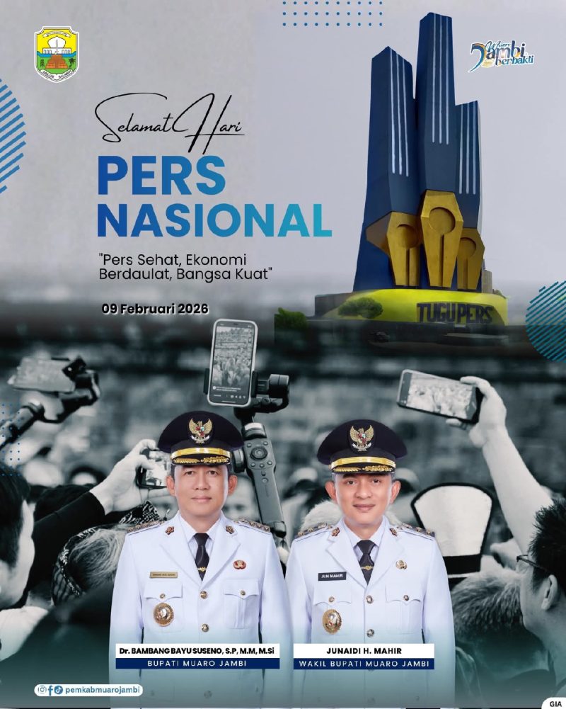 Sasaranfublik.com, Muaro Jambi – Pemerintah Kabupaten Muaro Jambi secara resmi menyampaikan apresiasi setinggi-tingginya kepada seluruh insan pers, khususnya yang bertugas di wilayah Kabupaten Muaro Jambi, dalam rangka memperingati Hari Pers Nasional (HPN).